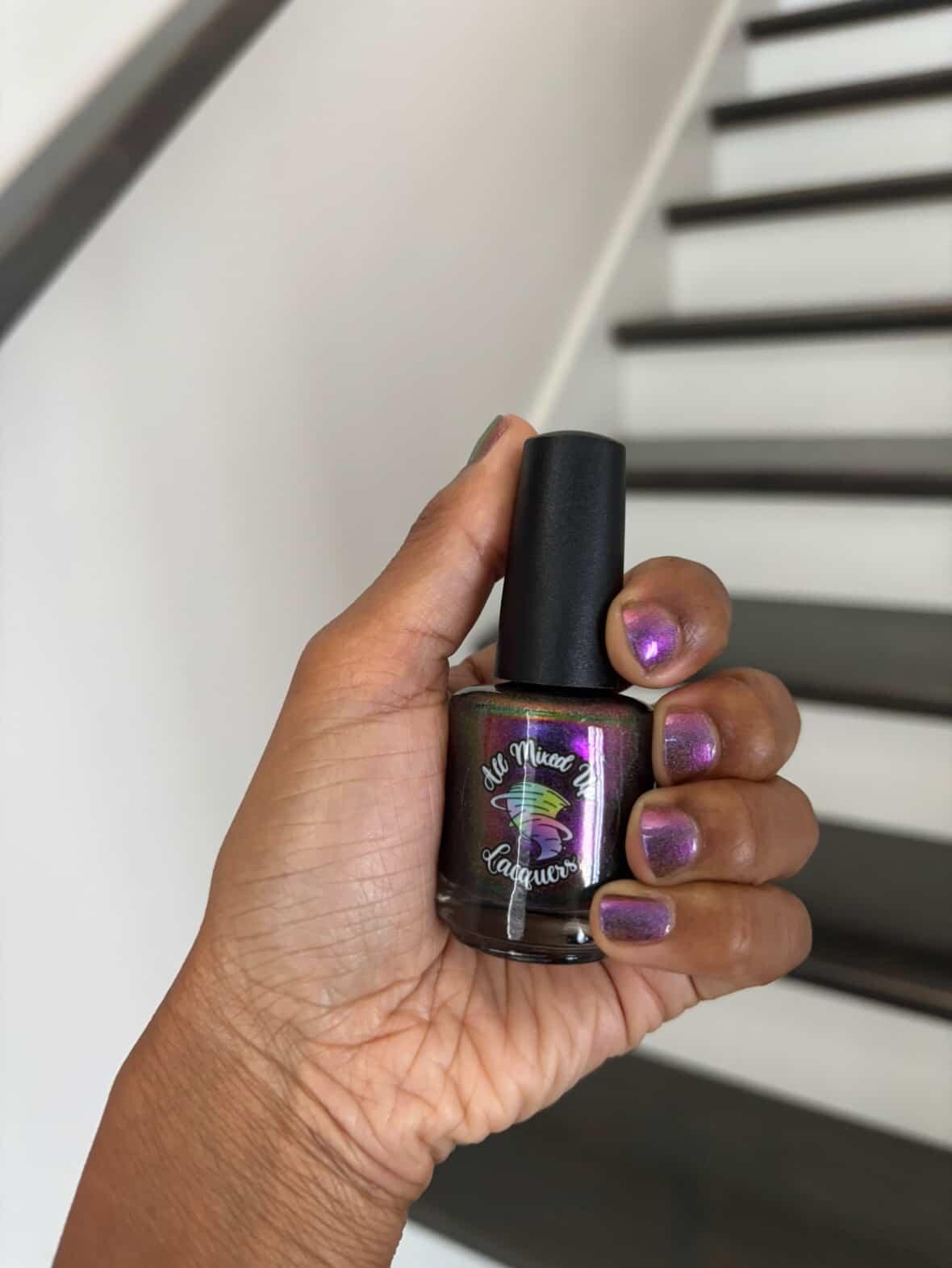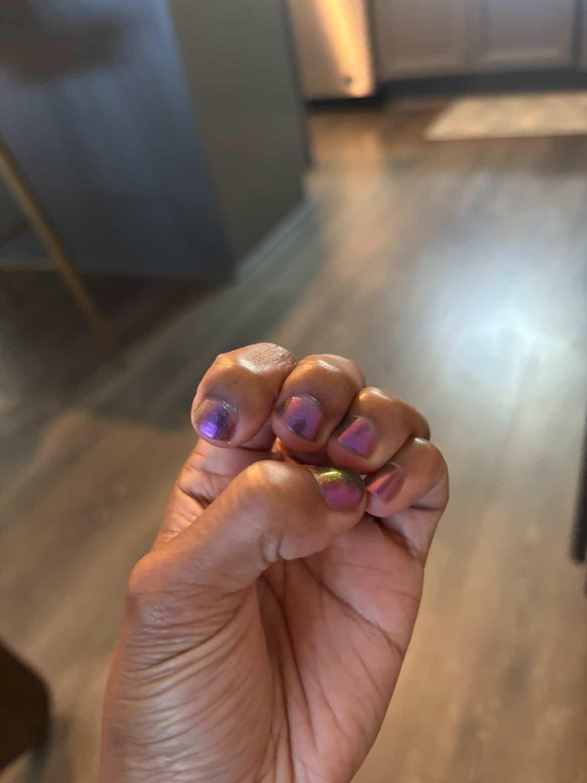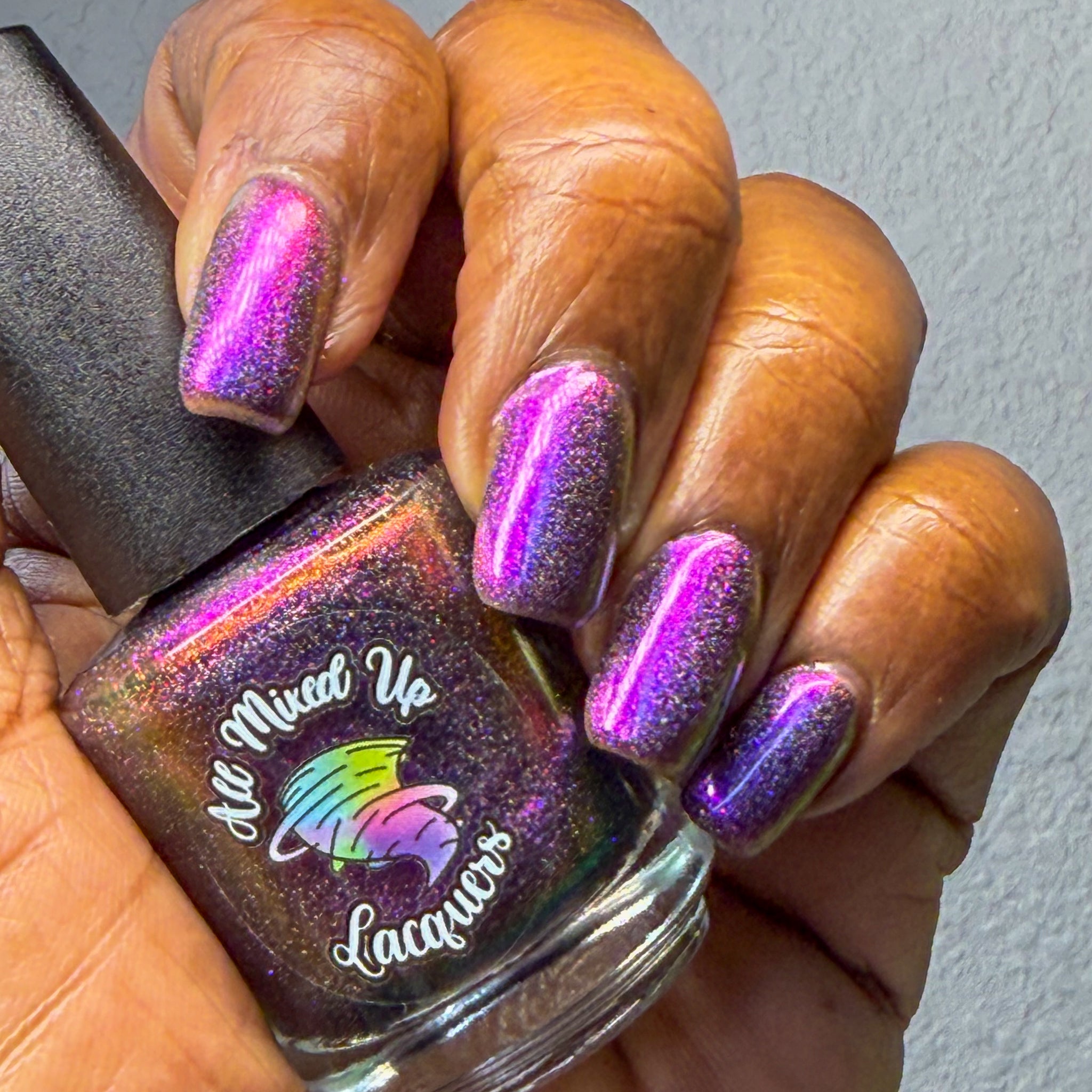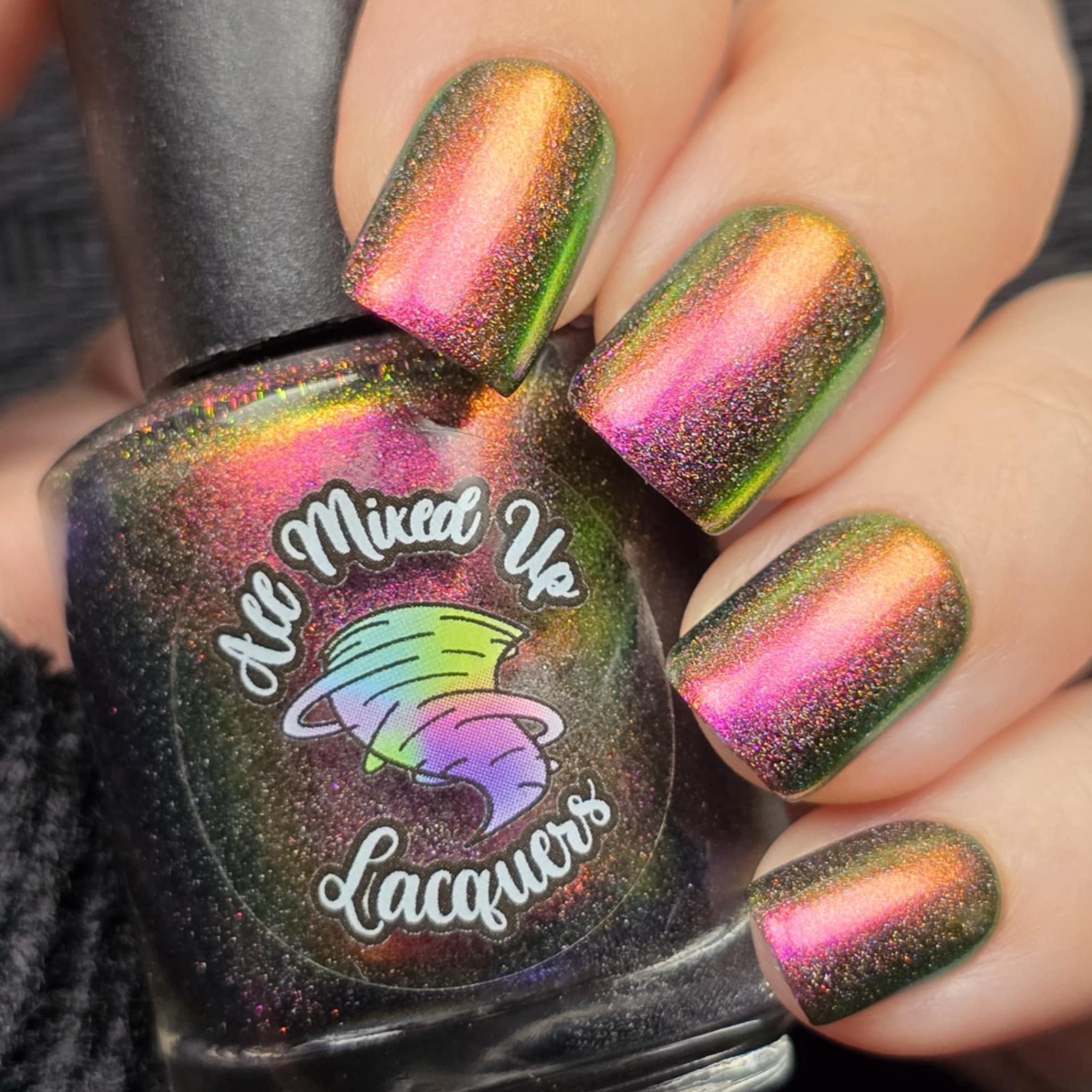 “Bite Me” - scattered holographic multichrome with a fuchsia/copper/green shift