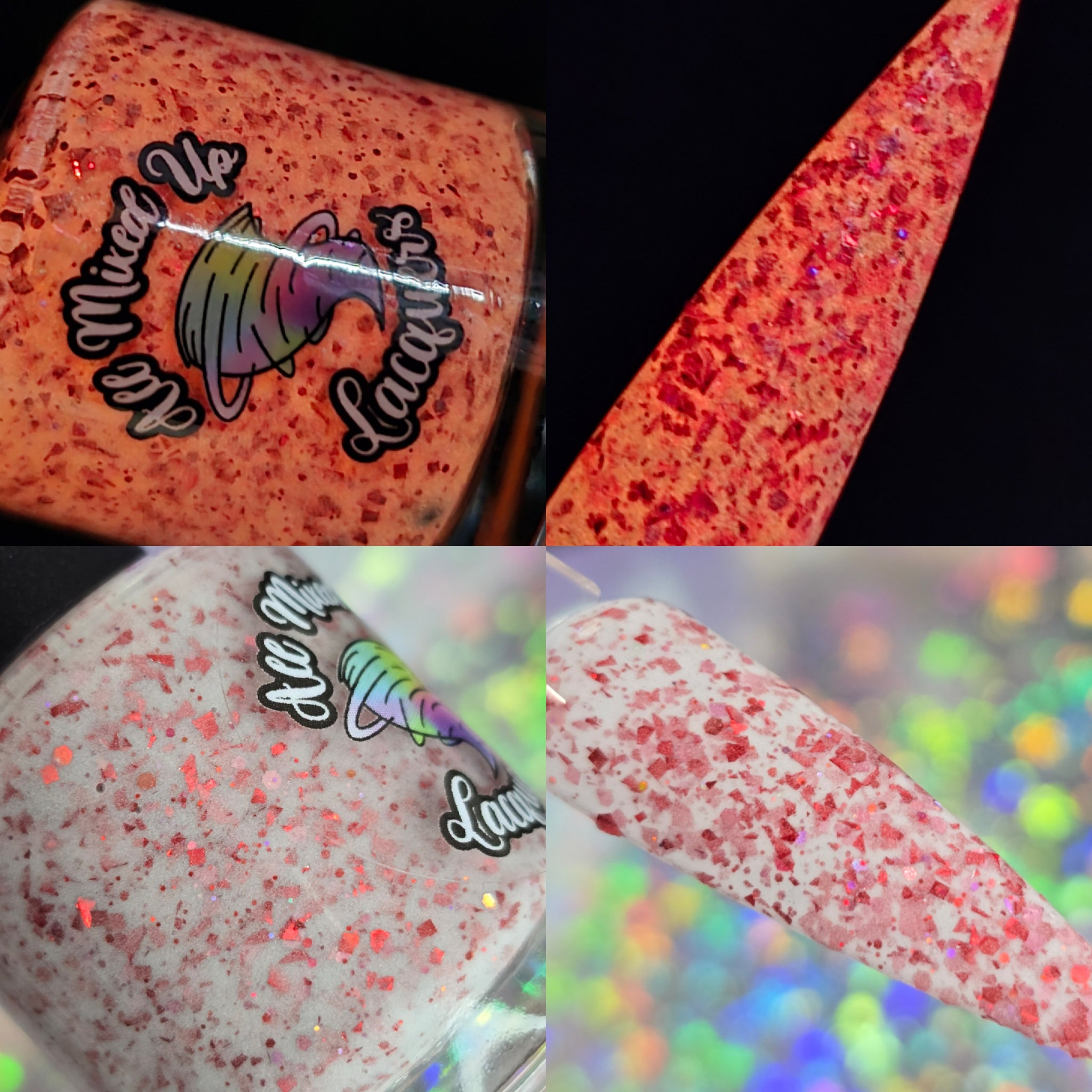 "Vampire" is a white neon red glow in the dark base with assorted red glitters
