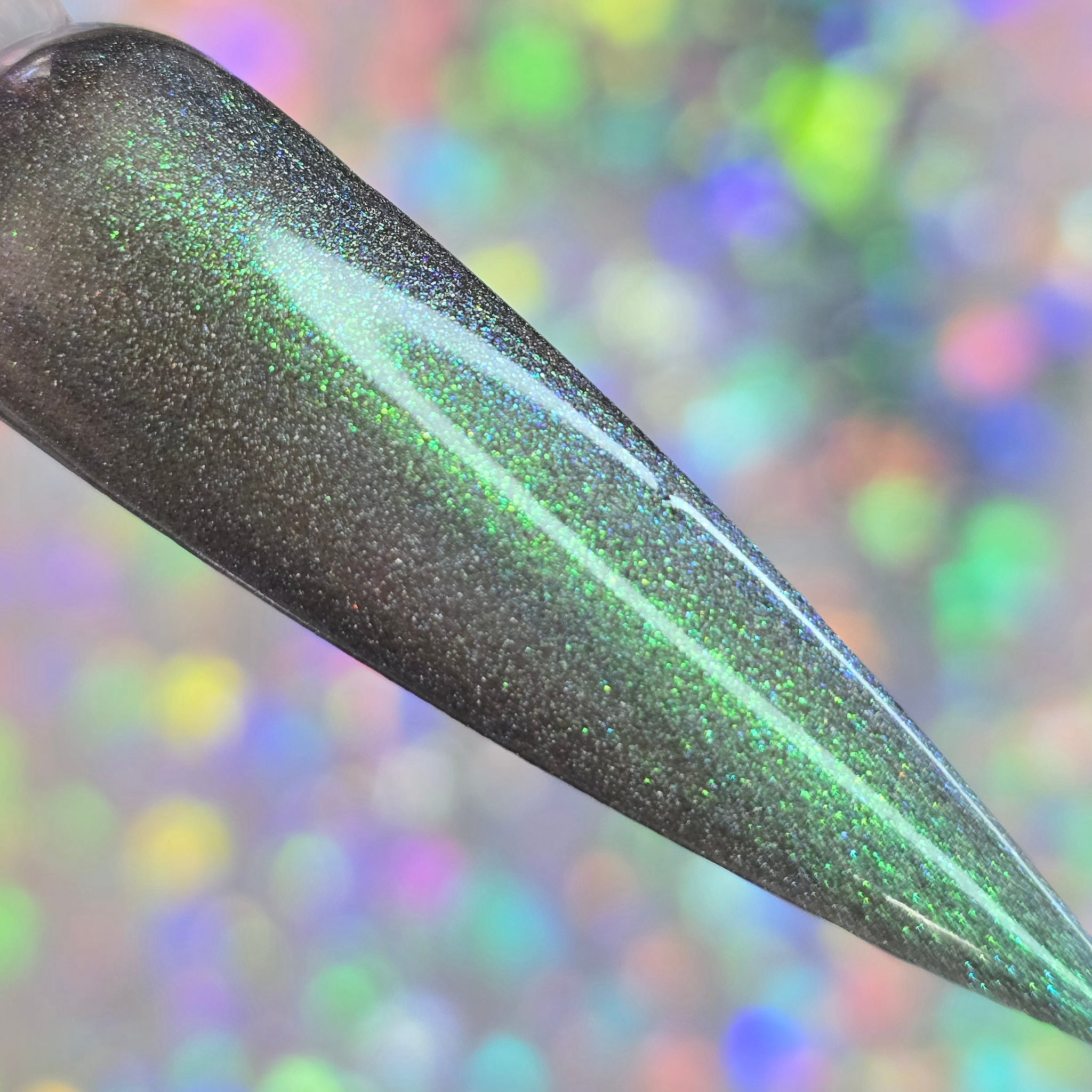 A dusty green/blue shifting shade with bits of sparkles.