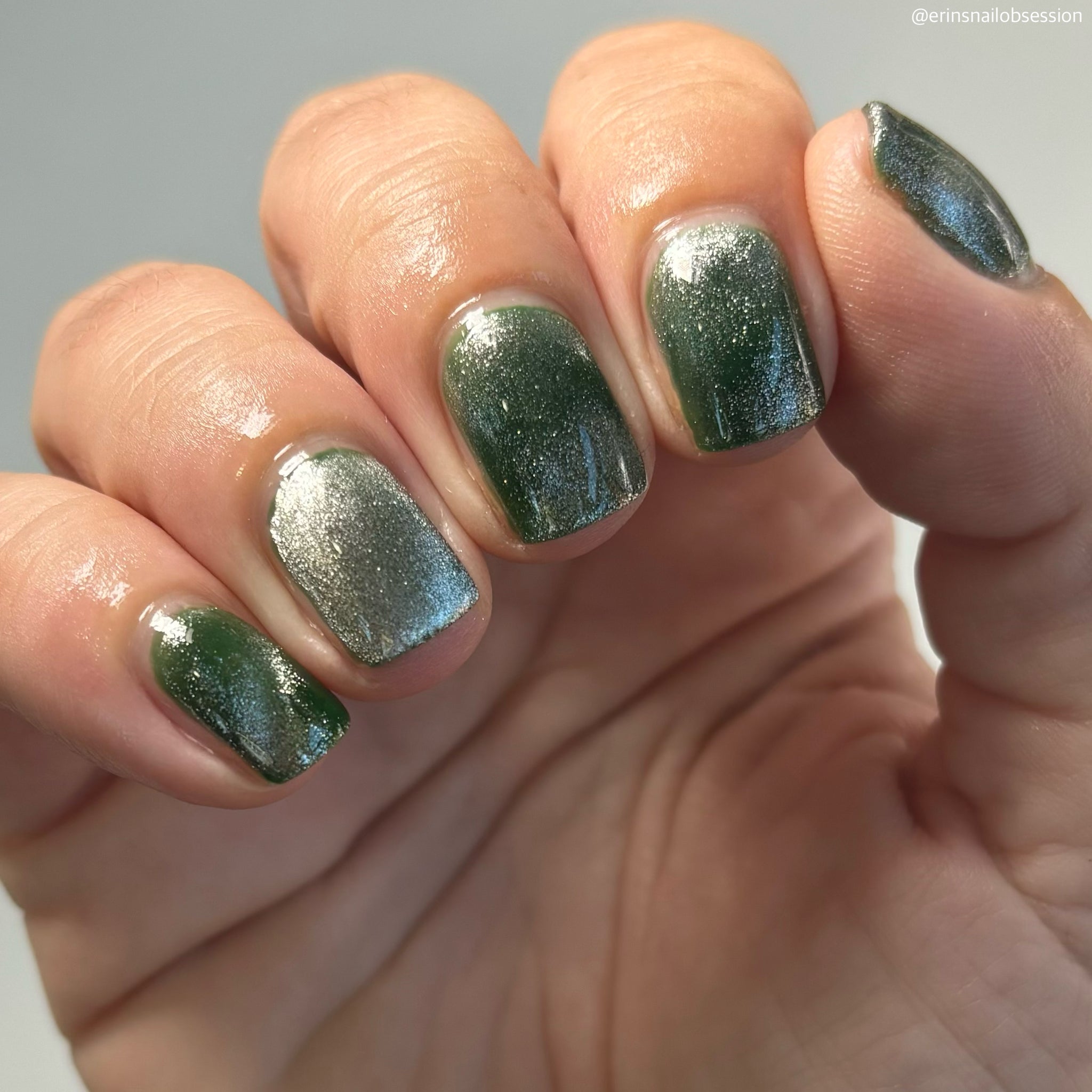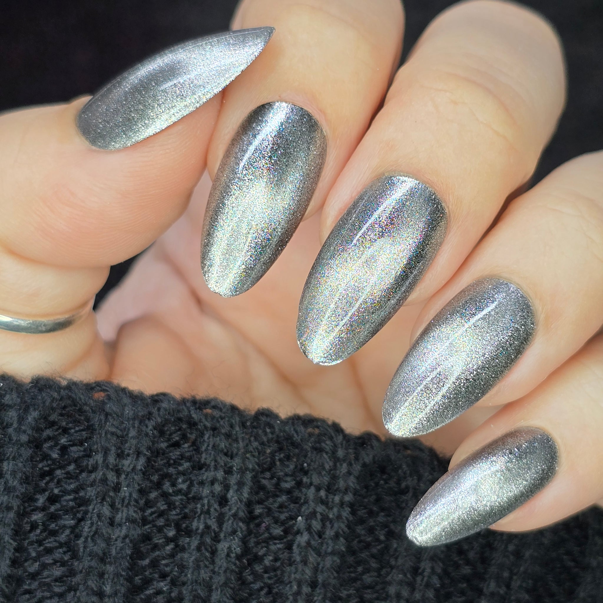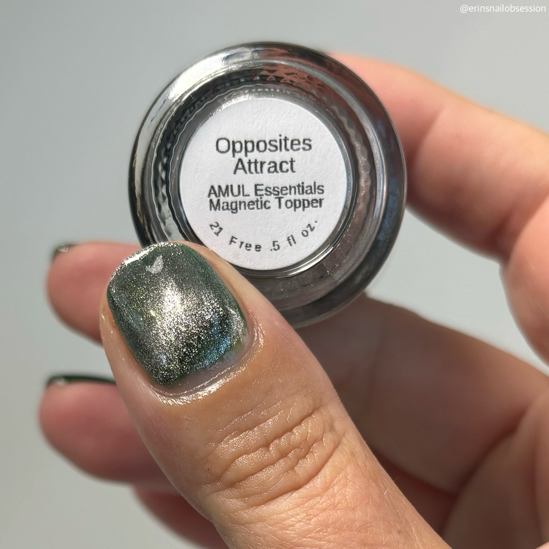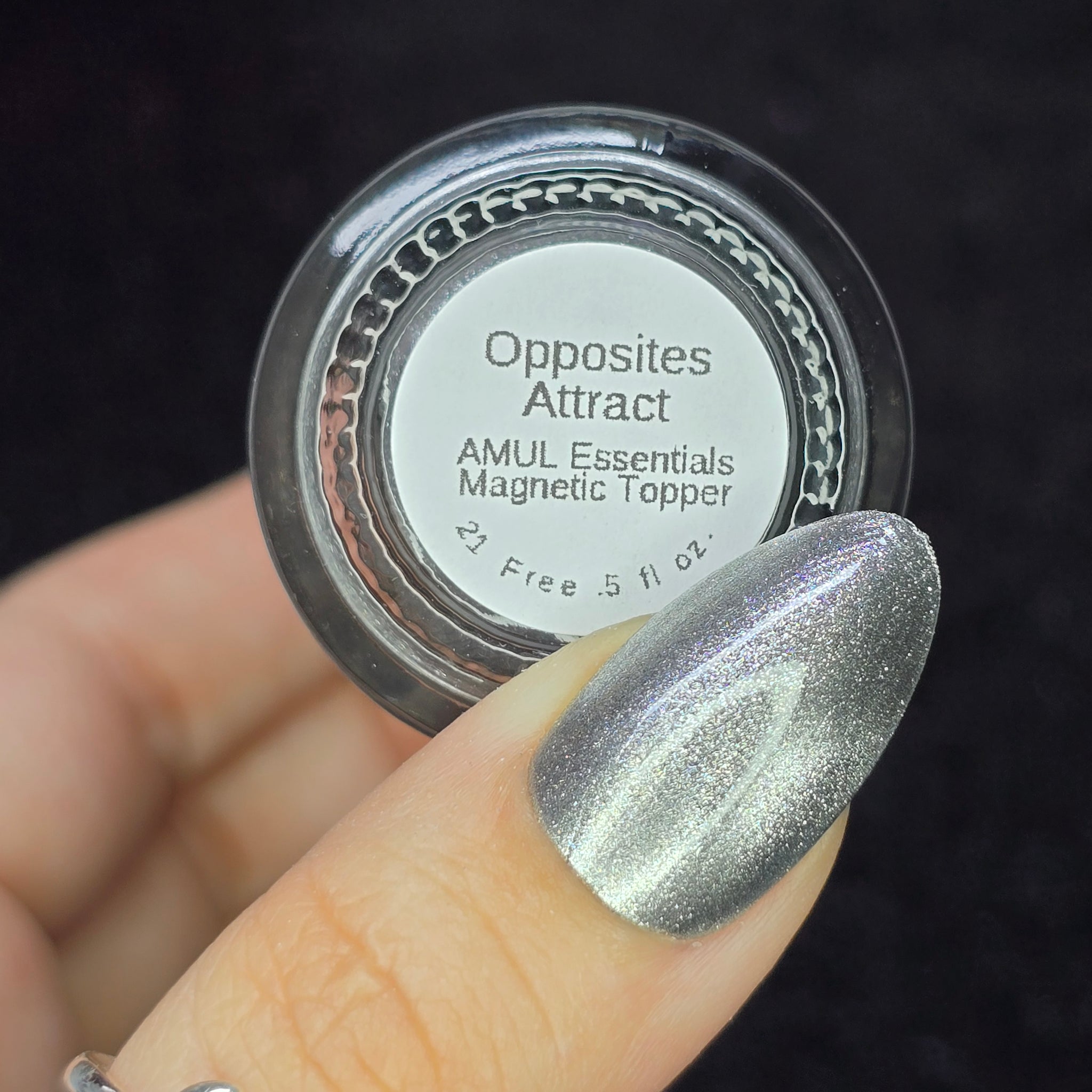 “Opposites Attract” - a silver magnetic topper. Can be used over any polish choice or between jellies for a unique look. Must use a strong magnet and over hold till dry. Some spreading will occur.